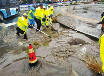 23日凌晨,暴雨倾盆而下,积水在东岗西路盘旋路十字至省政府礼堂段低洼处汇聚。城关区环卫局保洁二公司第二管理站东岗西路小组23名成员冲进大雨之中,自发组成推水小分队,及时清排积水,保障了道路畅通。记者赵雨欣通讯员王珍平摄